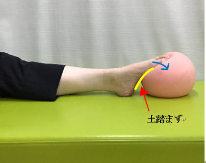 ①足指の付け根でボールを押すエクササイズ