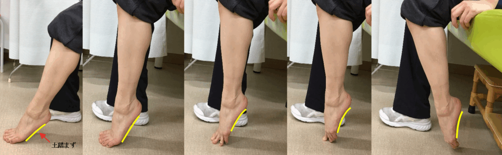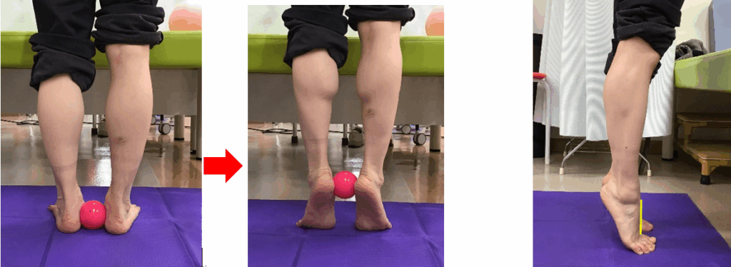 足の甲が床と垂直になるように踵を挙げてみましょう。