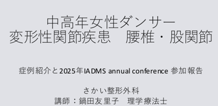 今回の内容は「ダンサーの変形性関節疾患へのリハビリ」でした。